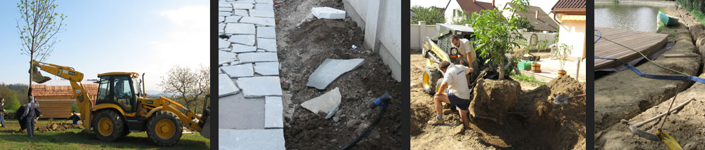 A terepmunkák a kertépítés legnagyobb és sokszor leghosszabb ideig tartó, egyben legköltségesebb munkái. A szakmailag szükséges talajcserék, ültető gödrök, dimbek - dombok, a közmű és öntözőrendszer fektetés, világítás, kerti sziklák behelyezése meghatározzák az egész kert későbbi sorsát. Ezek kevésbé látványos részei a kertépítésnek, hosszú távon viszont alapvetően befolyásolják a kert életét.